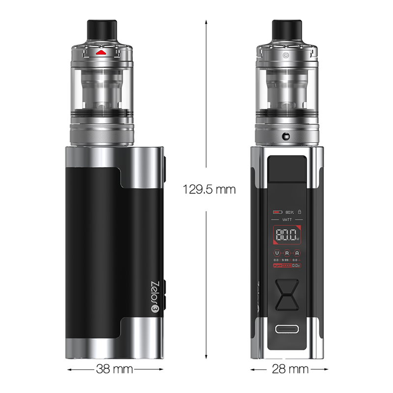 Aspire Zelos M80 Kit, 80W çıkış gücü, 0.96” TFT renkli ekranı ve Nautilus 3SR tankı ile hem MTL hem DL kullanımına uygun gelişmiş bir e-sigara kitidir. Type-C hızlı şarj desteği, kolay üst dolum sistemi ve geniş coil uyumluluğu sayesinde kullanıcıya yoğun aroma ve yüksek buhar performansı sunar.