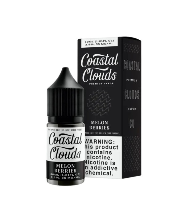 Coastal Clouds Melon Berries Salt Likit, kavun ve karışık orman meyvelerinin ferahlatıcı birleşimiyle tatlı, canlı ve meyvemsi bir lezzet sunar. 50VG / 50PG oranı sayesinde yumuşak içim ve yoğun aroma dengesi sağlar. 30 mL şişede, 35 mg ve 50 mg nikotin seçenekleriyle sunulur.