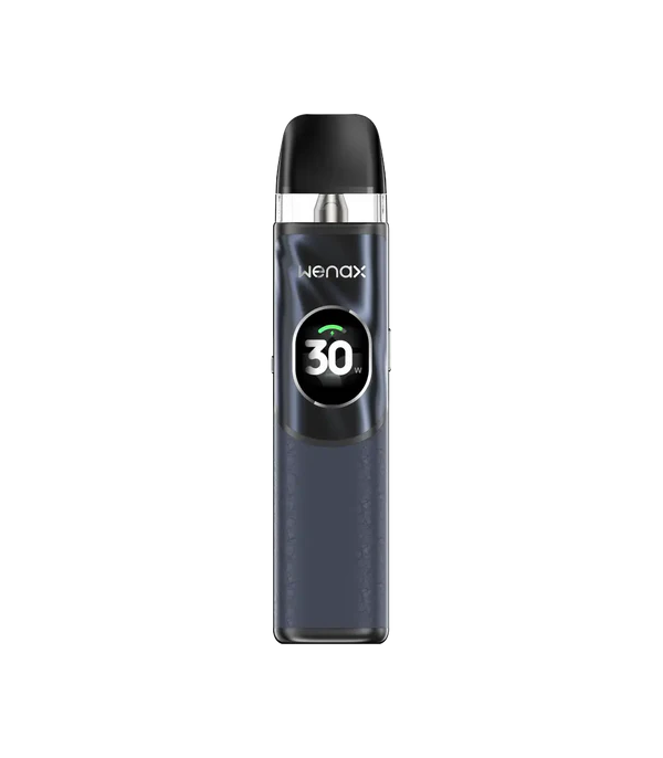 GeekVape Wenax Q2, şık derili yüzeyi, parlak metal detayları ve zarif tasarımıyla dikkat çeken premium bir pod cihazıdır.