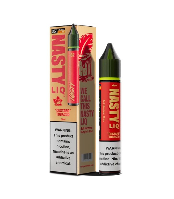 Nasty Liq Custard Tobacco Salt Likit; tütün ve tatlı aromaları bir arada sunarak dengeli, lüks bir buhar deneyimi arayan kullanıcılar için ideal bir tercihtir.