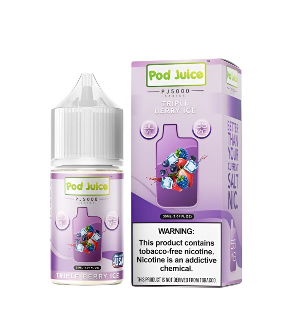 Pod Juice PJ5000 Triple Berry Ice Salt Likit, çilek, yaban mersini ve böğürtlenin tatlı-ekşi karışımını buzlu ferahlıkla birleştiren canlı ve taze bir elektronik sigara likitidir. 50VG / 50PG oranı sayesinde dengeli aroma ve pürüzsüz içim sağlar. 30 mL şişede; 35 mg ve 55 mg nikotin seçenekleriyle üretilmiştir.