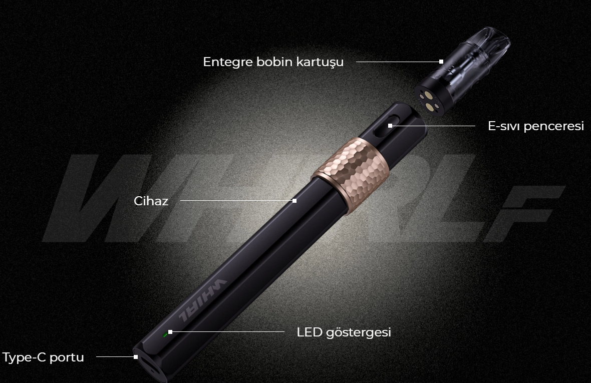 • 1 × 1.2 Ohm Whirl F pod kartuş (önceden takılı)