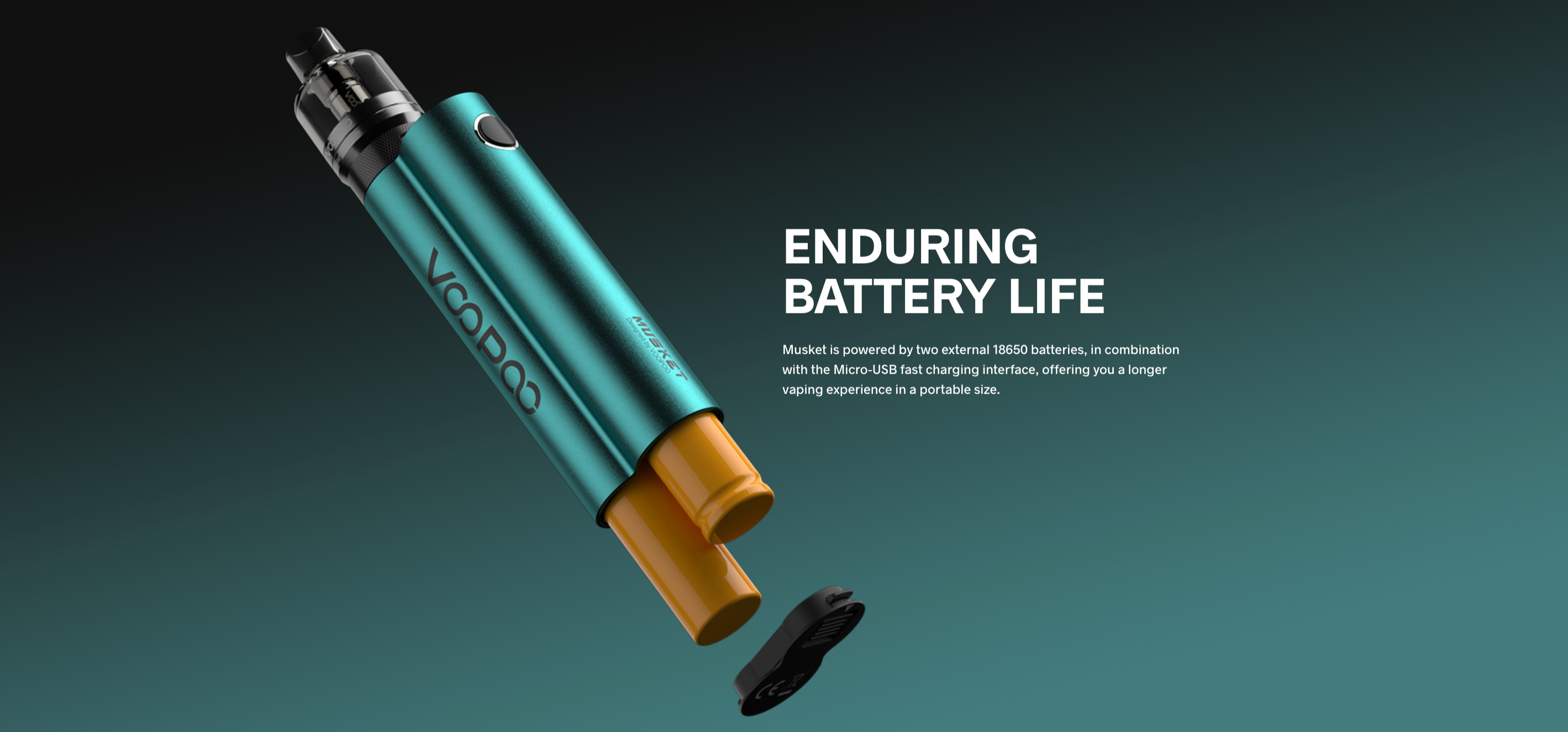 VOOPOO MUSKET Kit, modern ve dayanıklı yapısıyla dikkat çeken, uzay alüminyum alaşımından üretilmiş şık bir cihazdır. Bu malzeme sadece cihazın sağlamlığını artırmakla kalmaz, aynı zamanda ergonomik tasarımıyla elde rahat ve kolay kavranmasını sağlar. Maksimum 120W güç çıkışı ile güçlü bir performans sunan MUSKET Kit, iki adet 18650 pil ile çalışır. Alt kısmındaki pil kapağı kolayca açılarak piller hızlıca değiştirilebilir ve cihaz, modern bir kolaylık sağlayan C tipi şarjı destekler.