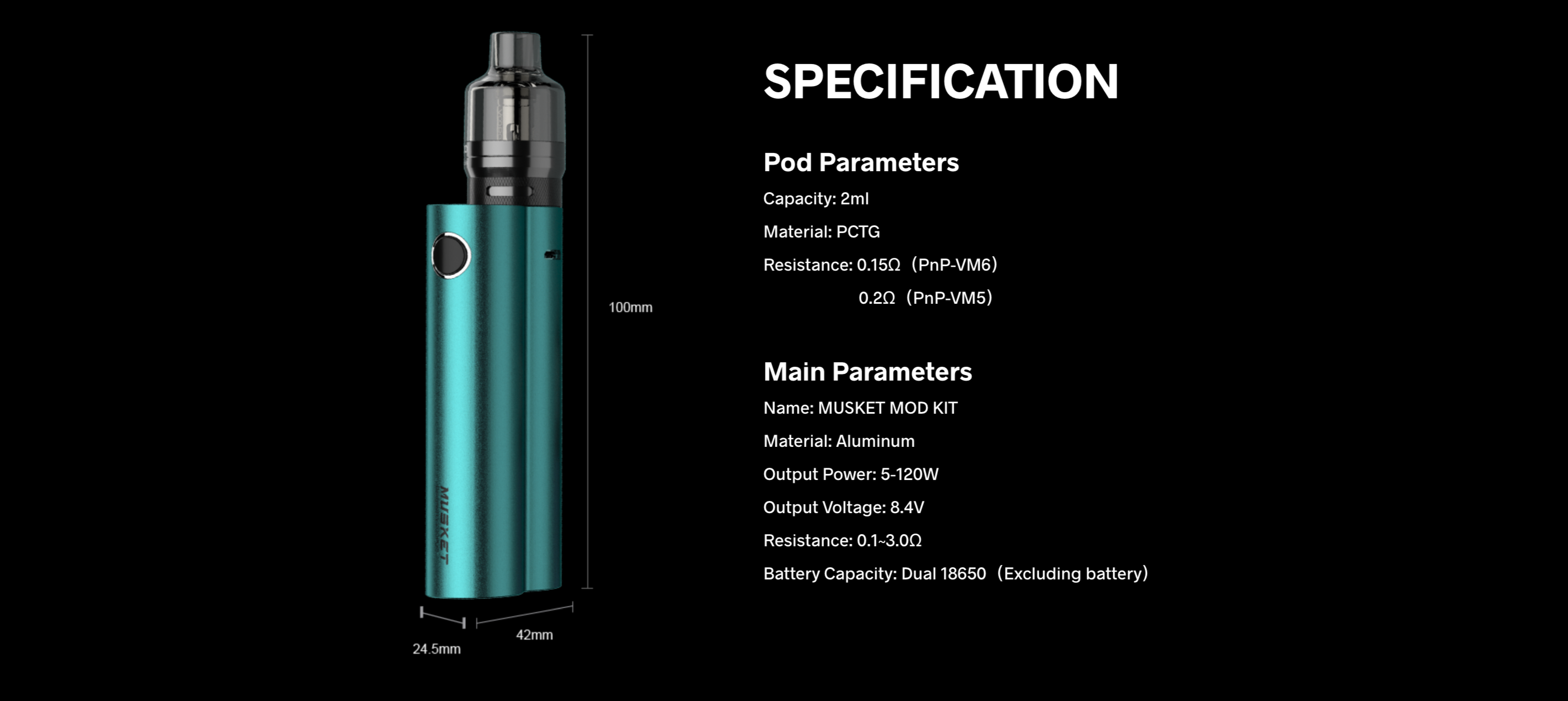 • 1 x Voopoo Musket Pod Mod